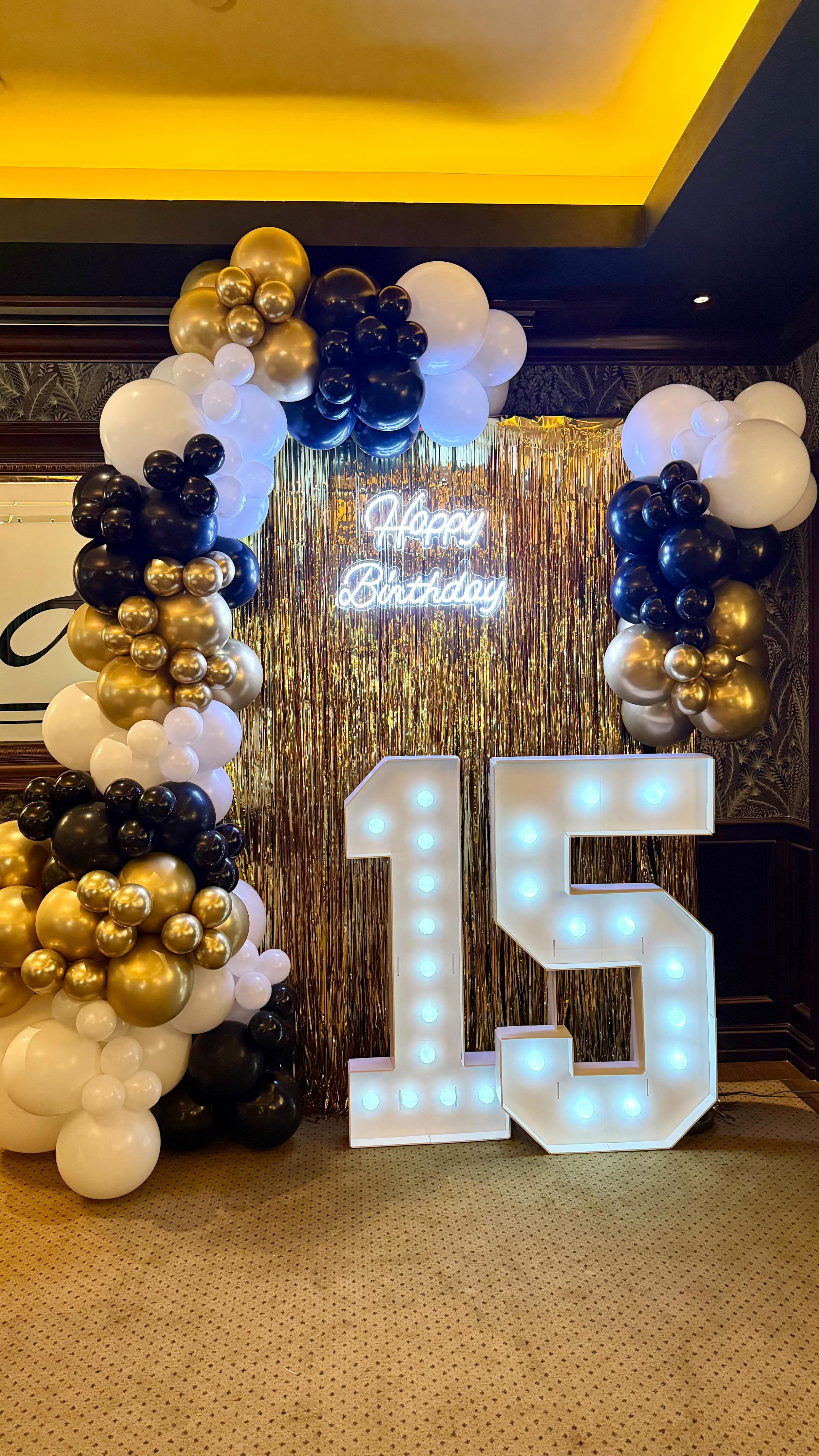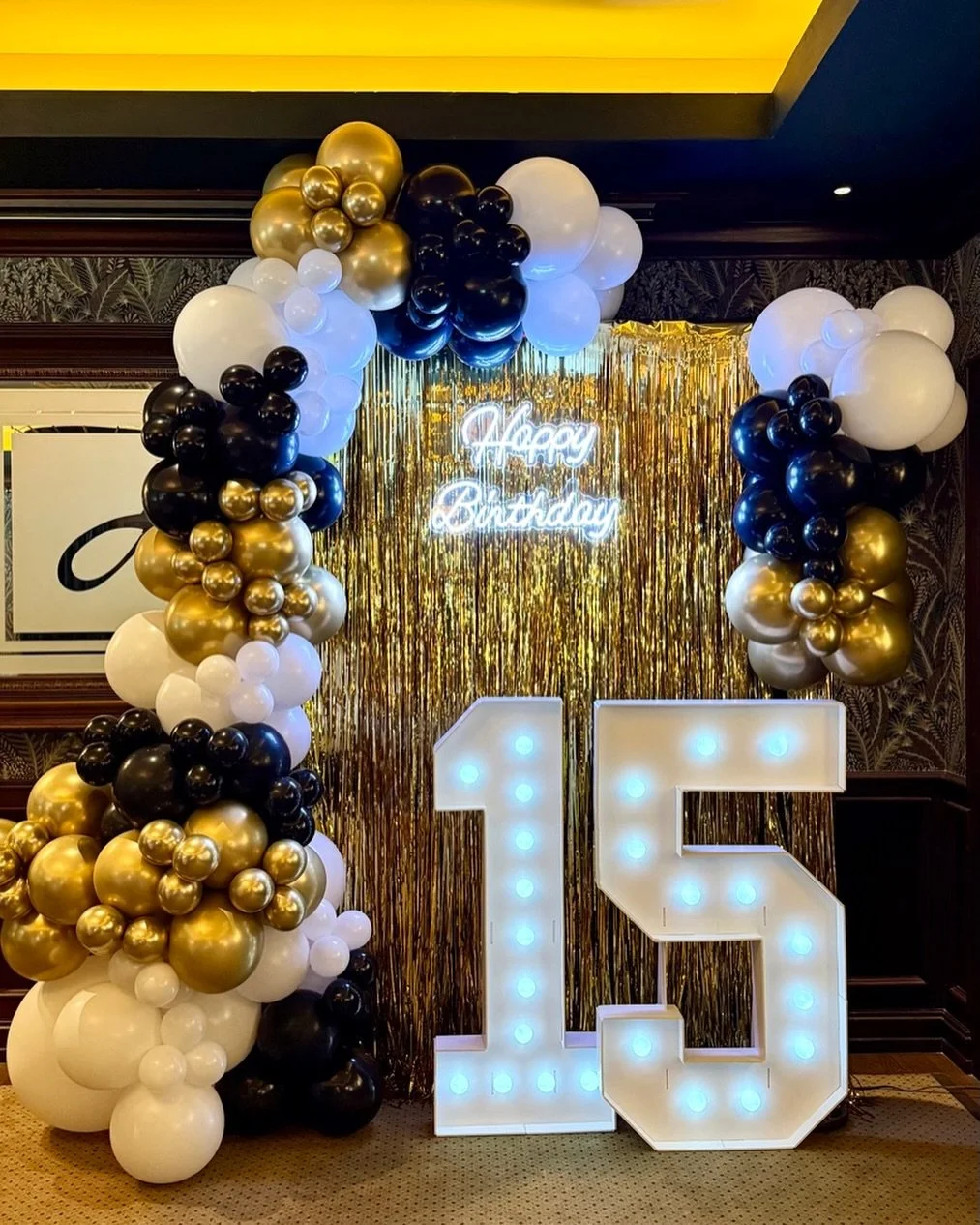 Custom balloon number and mosaic displays designed to elevate your celebration with a luxurious, show-stopping aesthetic.